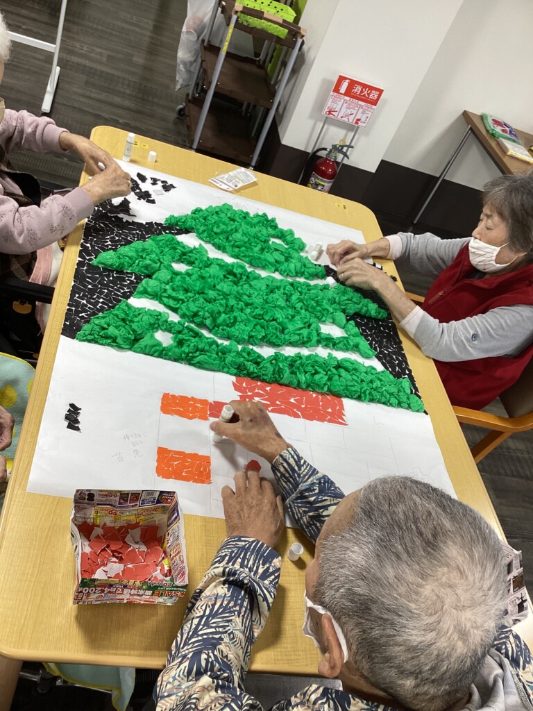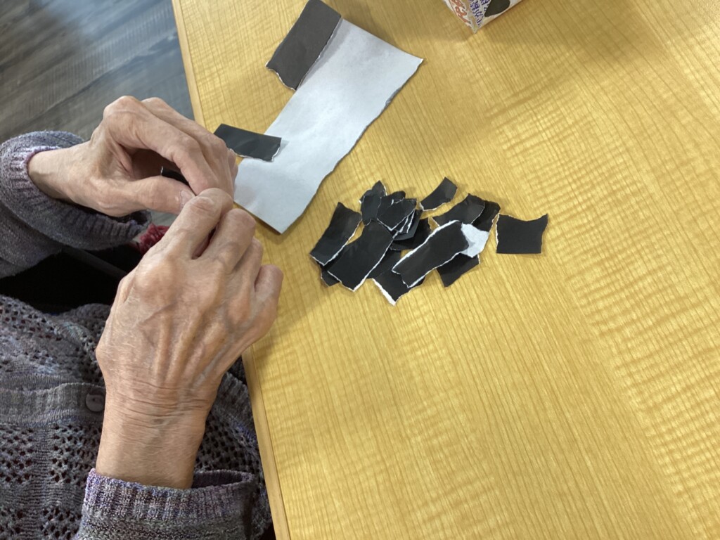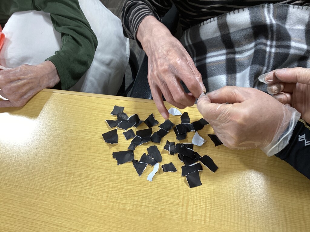 ちぎって頂いた折り紙を貼り付けて頂く組と2組に分かれて作成しています♪