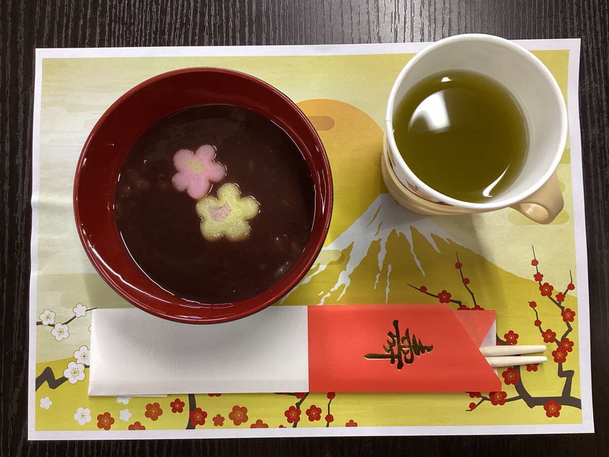 ぜんざいと和菓子・温かい緑茶をご用意しました✨