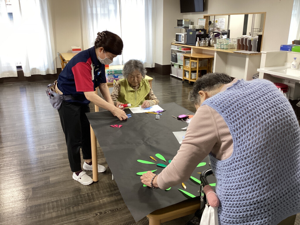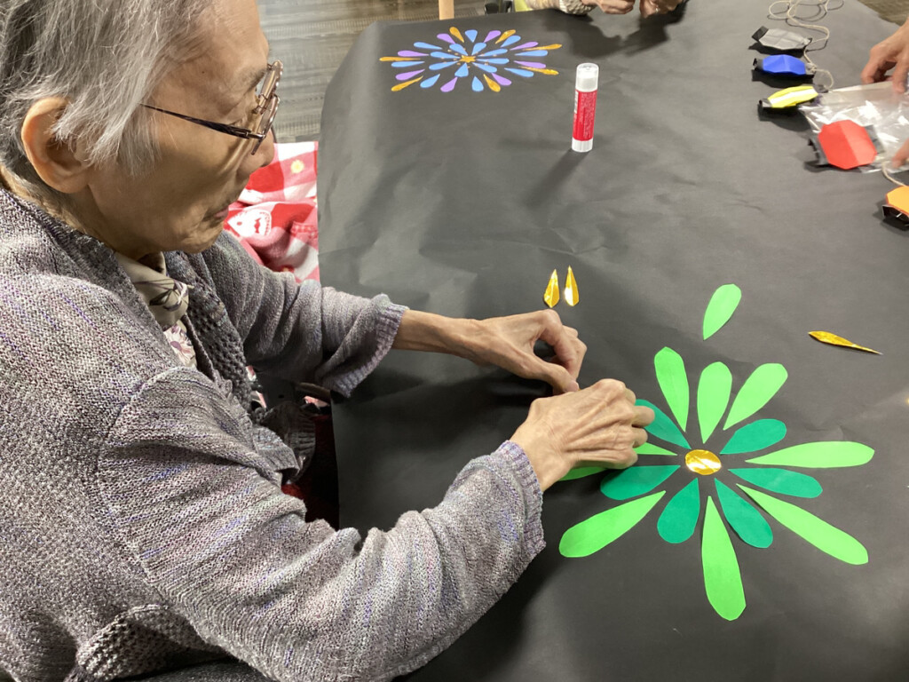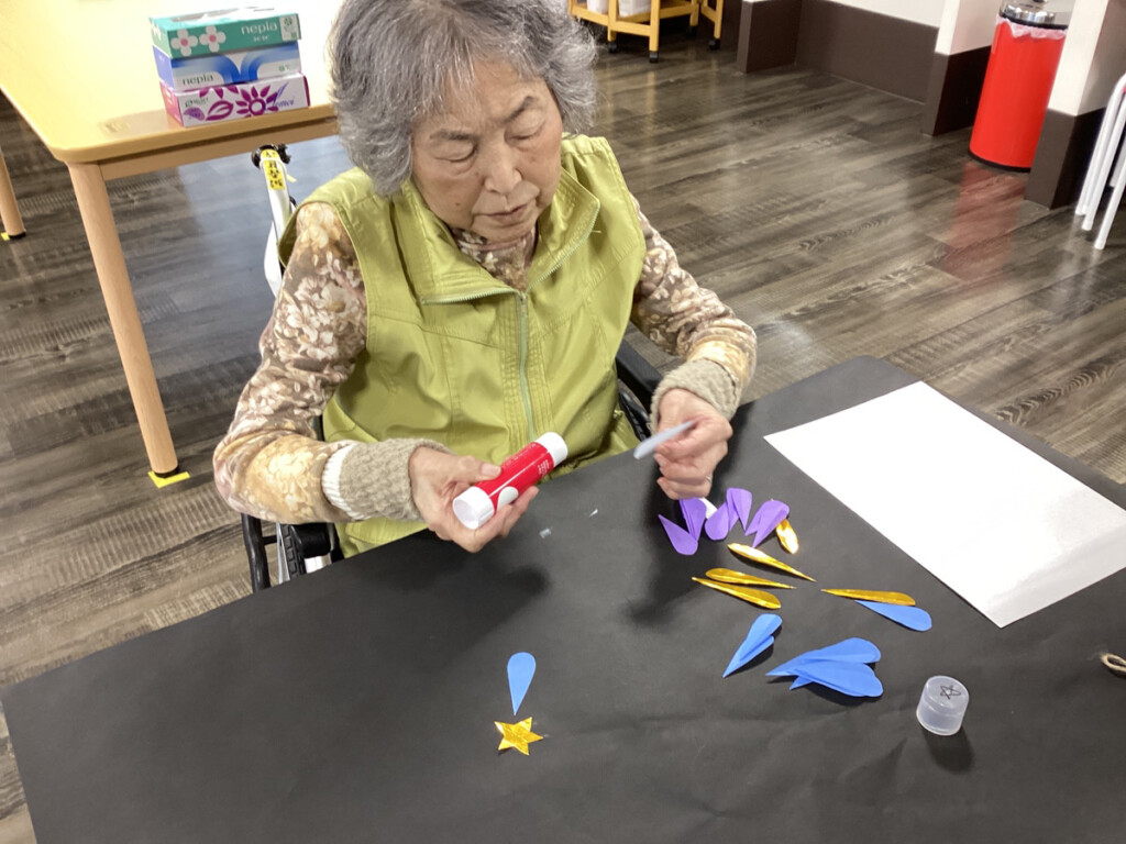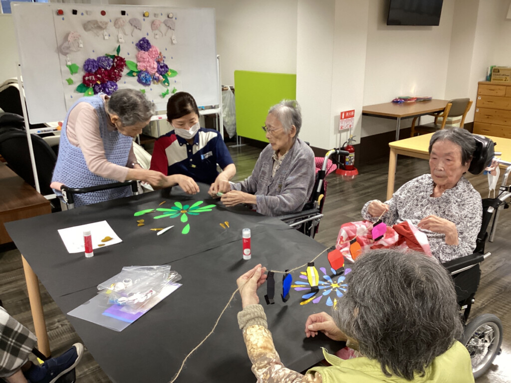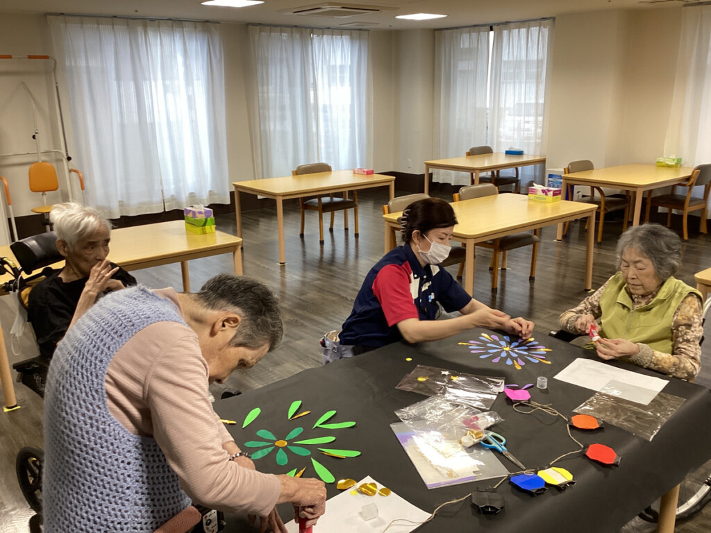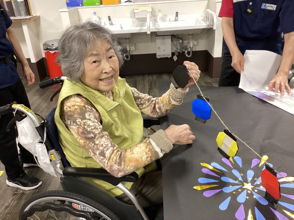 ということで今、ケア・パレス大阪ではレクリエーションの時間に、花火の飾りを作成し始めました✨