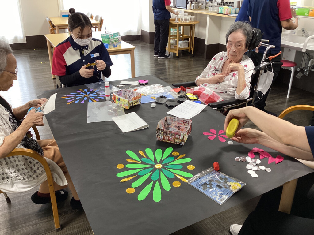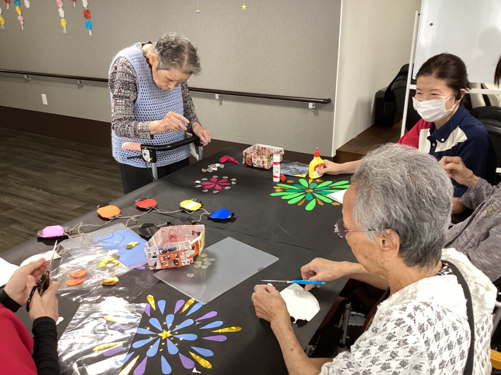 今回のレクリエーションでは、花火の飾り作りの続きを行いました✨
