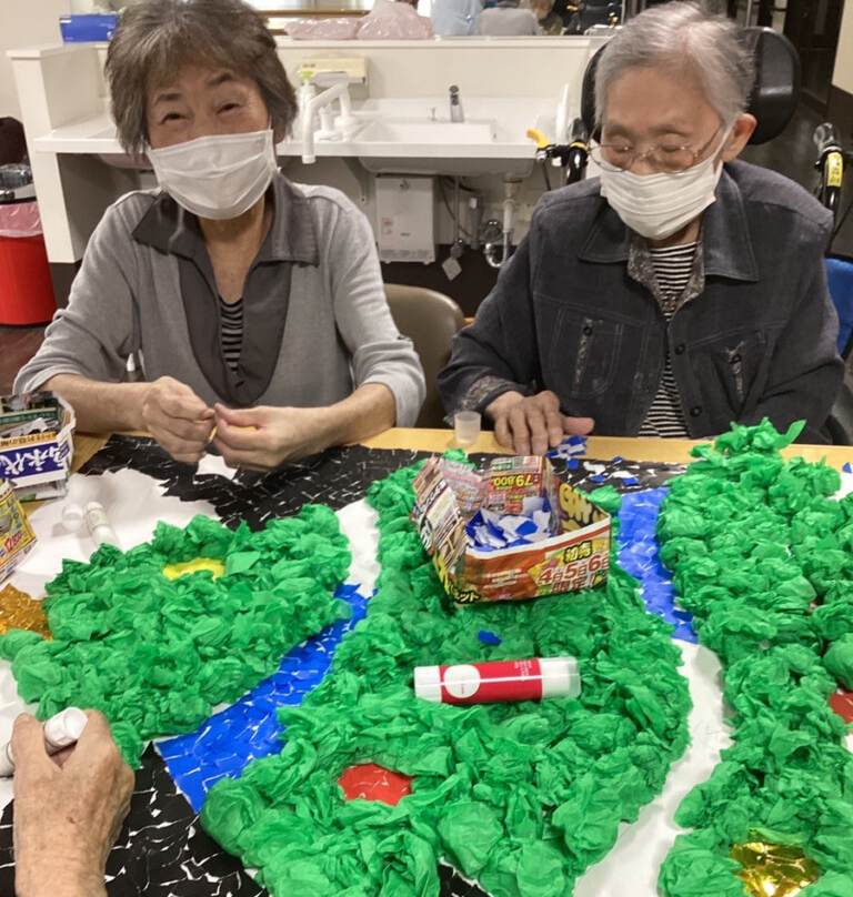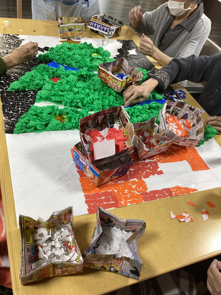 先日のレクリエーションではちぎり絵でのクリスマスツリーの飾りの続きをして頂きました✨