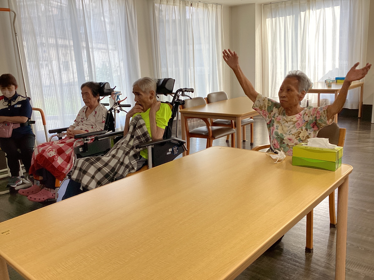 こんにちは、ケア・パレス大阪です! 近頃は激しい夕立が多いですね。 お出かけの際には、折り畳み傘を持っておくと良さそうです☔ 今回のレクリエーションでは、のんびりと体操をしました(*^-^*) まずは、歌を聴くだけでも楽しくなる、マツケンサンバに合わせて体を動かします! ご自分のお好きなタイミングで手を振っ...